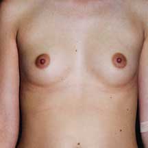 18 year old before (34-A bra) and after breast augmentation with 325 cc saline implants. |