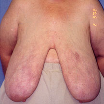 old patient with extremely pendulous breasts and severe back, neck and